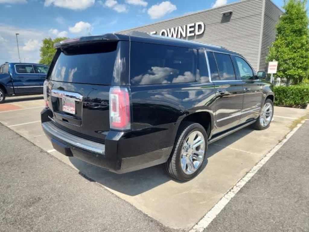 OPEN ROAD PACKAGE, (CF5) power sunroof, (U42) rear seat entertainment system and on SLT (IO6) Audio system with navigation, WHEELS, 22 X 8.5 (55.9 CM X 21.6 CM) BRIGHT ALUMINUM with Midnight Silver premium paint, ENTERTAINMENT SYSTEM, REAR SEAT, BLU-RAY/DVD with remote control, overhead display, Wi-Fi wireless projection capability, four 2-channel wireless digital headphones, auxiliary HDMI/MHL audio/video input and 2 USB ports, ASSIST STEPS, POWER-RETRACTABLE with bright accent strip and perimeter lighting, ADAPTIVE CRUISE CONTROL - ADVANCED with Automatic Emergency Braking, radar based system automatically adjusts speed to maintain preset following gap, ENHANCED SECURITY PACKAGE body security content, includes (UTR) self-powered horn, (UTV) interior movement and (UTU) vehicle inclination sensors, door and liftgate lock shields and glass break sensors in rear quarter glass and liftgate window, removes sunglass holder and conversation mirror from overhead console, AUDIO SYSTEM, 8 DIAGONAL COLOR TOUCH SCREEN NAVIGATION WITH GMC INFOTAINMENT SYSTEM AM/FM/SiriusXM stereo with seek-and-scan and digital clock, includes Bluetooth® streaming audio for music and select phones; voice-activated technology for radio and phone; and Shop. Featuring Apple CarPlay® and Android Auto® capability for compatible phone; 5 USB ports and 1 auxiliary jack (STD), ENGINE, 6.2L ECOTEC3 V8 with Active Fuel Management, Direct Injection and Variable Valve Timing, includes aluminum block construction (420 hp [313 kW] @ 5600 rpm, 460 lb-ft of torque [624 N-m] @ 4100 rpm) (STD), TRANSMISSION, 10-SPEED AUTOMATIC electronically controlled with overdrive, tow/haul mode and tap up/tap down shifting (STD). GMC Denali with Onyx Black exterior and Cocoa/Dark Atmosphere interior features a 8 Cylinder Engine with 420 HP at 5600 RPM*.