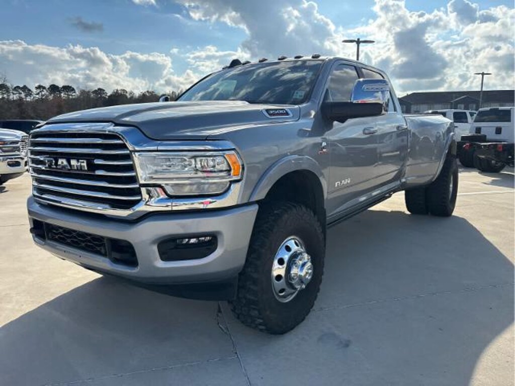 ENGINE: 6.7L I6 CUMMINS HO TURBO DIESEL Selective Catalytic Reduction (Urea), Dual 730 Amp Maintenance Free Batteries, Cummins Turbo Diesel Badge, Heavy Duty Engine Cooling, Supplemental Heater, 220 Amp Alternator, Current Generation Engine Controller, Diesel Exhaust Brake, Capless Fuel Fill w/o Discriminator, LONGHORN LEVEL 1 EQUIPMENT GROUP Blind Spot & Cross Path Detection, LED Bed Lighting, Power Deployable Running Boards, 12 Touchscreen Display, Selectable Tire Fill Alert, Ramcharger Wireless Charging Pad, Radio: Uconnect 5 Nav w/12.0 Display, MOPAR Spray In Bedliner, 17 Speaker harman/kardon Premium Sound, TOWING TECHNOLOGY GROUP CTR Stop Lamp w/Cargo View Camera, Surround View Camera System, Trailer Reverse Guidance, DUAL REAR WHEELS Clearance Lamps, Tires: LT235/80R17E BSW AS, 17 Steel Spare Wheel, Box & Rear Fender Clearance Lamps, 6000# Front Axle w/Hub Ext, Wheels: 17 x 6.0 Polished Aluminum, GVWR: 14,000 lbs, Chrome Flat Cab-Length Side Steps, TRANSMISSION: 6-SPEED AUTOMATIC AISIN AS69RC HD Transmission Oil Cooler, Leather Wrapped Shift Control. Ram Longhorn with Billet Silver Metallic Clearcoat exterior and Cattle Tan/Black interior features a Straight 6 Cylinder Engine with 420 HP at 2800 RPM*.